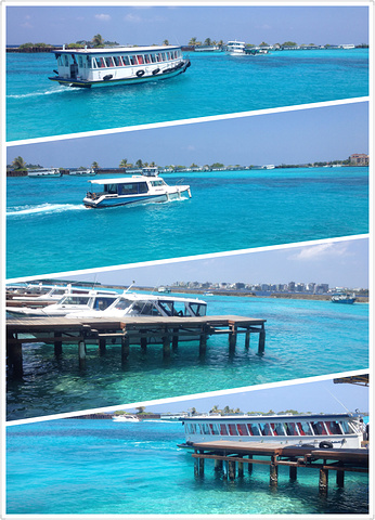 回到酒店,收拾好东西吃好早餐。就坐轮渡到马累,但是去机场的码头在另一个方向,所以我和姐姐打算打车过去,碰到个司机,问$3行不行(因为我们有俩个皮箱),司机说不行,然后问MVR30行不行,司机说行,搞不懂为什么。到了码头,花了MVR10/人再坐轮渡到机场岛。下午的飞机,上午就到了,就一直在外面逛逛,拍了这几张合成照片。