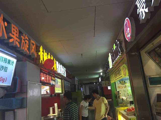 光谷世界城三楼美食街,我哭的位置就不用多说了,应该每个来过武汉的人都知道光谷在哪里吧,地铁二号线的终点站,还有众多公交车都经过这里。紧挨着美食城的是中影天河国际影城,旁边是一家三福,对面是家乐福超市,逛街的更是四处都是啊,地理位置不可谓不优越。在美食街内遍布各色美食,有武汉著名的烤鸭勃,还有长沙小吃臭豆腐,另外还有在武汉随处可见的烤肉串,韩国小吃炒年糕等等,饿了还有菠萝饭,生煎包也是好吃的很,还有寿司,贵哥卤肉卷,甚至在里边还有一家良品铺子。渴了还有各种奶茶店,柠檬王子等等。简直就是吃货的天下呀,曾经尝试在这里吃一下午都没有重样,关键是价格也非常符合我们这些学生党,一般这里的老板们服务态度都挺不错,很热情。可能唯一有点不太好的就是通常都有很多人,而且还没有空调,在夏天这可真是个愁人的事情!