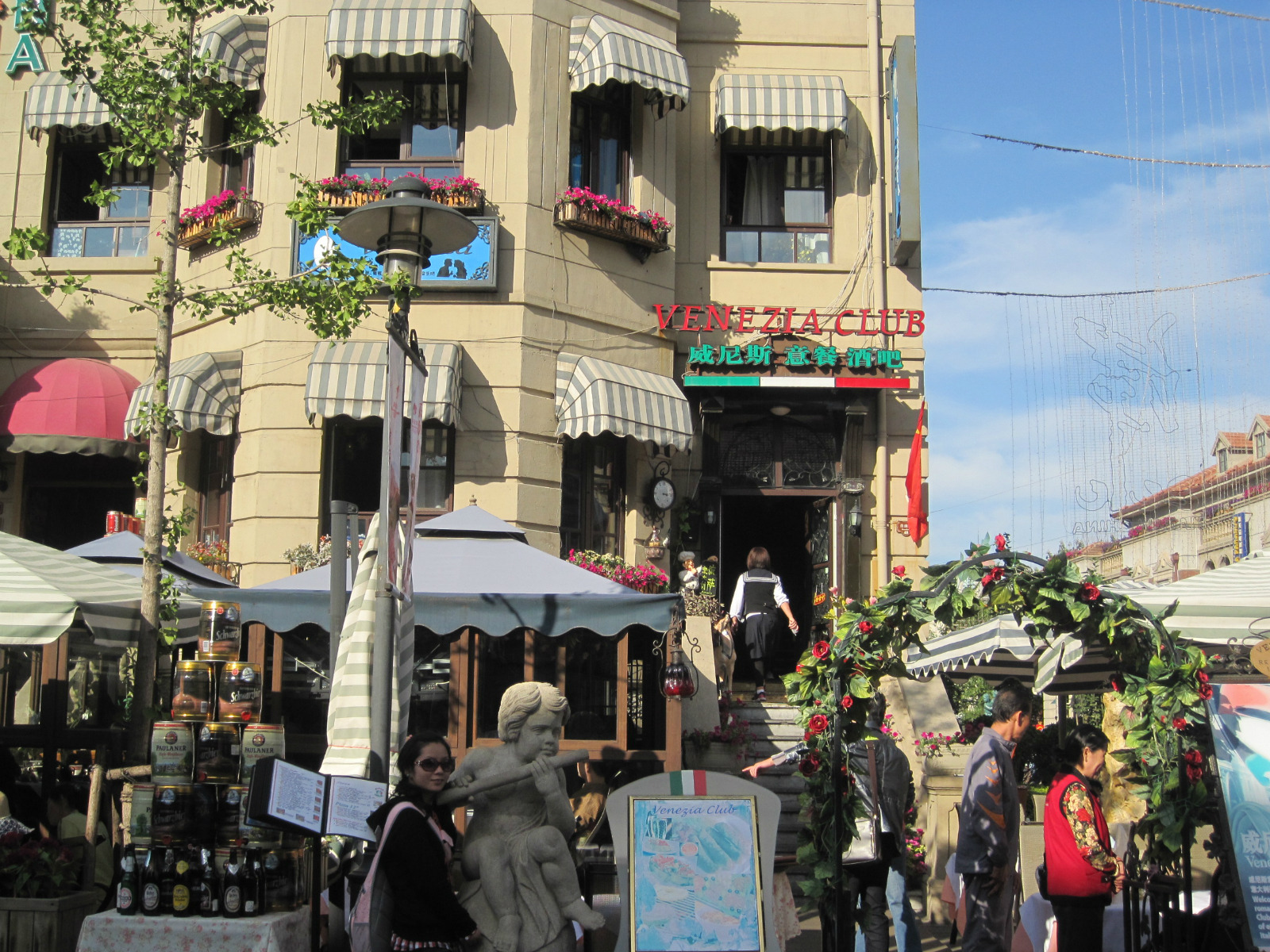 【概述】这里曾是意大利在华的租界,所以它的建筑特色、商贸娱乐都极富意大利风情。【地理位置】五经路、胜利路、博爱道和进步路围起来的这块区域统称为意式风情街,中间有两个广场,一个马可波罗广场,一个但丁广场。【交通】意式风情街离天津站很近,行李很少的情况下,建议步行,十分钟到十五分钟。【看点】1.这里的意式风情建筑;2.意式餐厅、酒吧、小店,可以尝下意大利口味的冰淇淋,十几块钱,味道真不错;3.这里还有很多名人故居,其中比较有名的是袁世凯和梁启超了。
