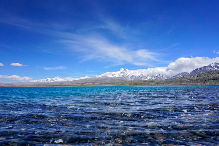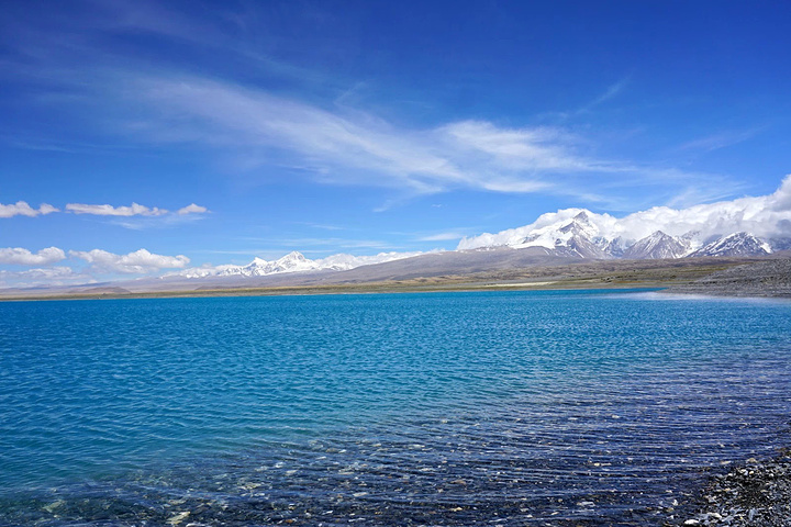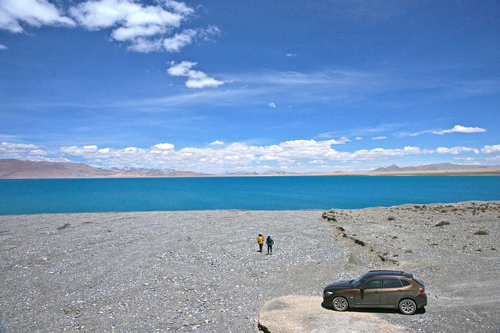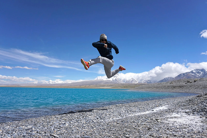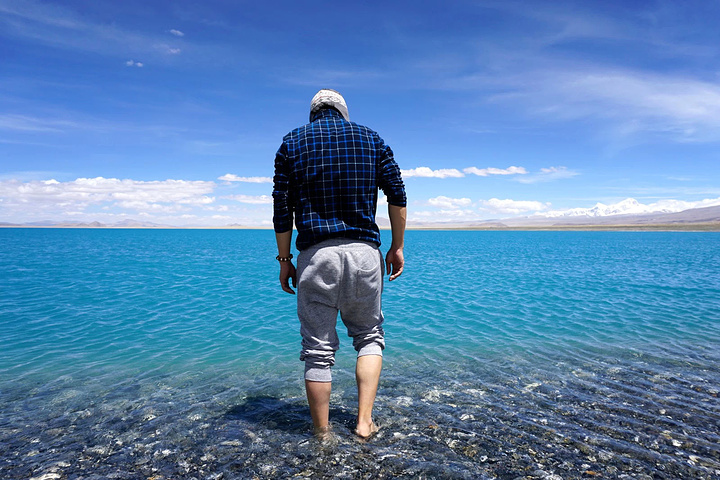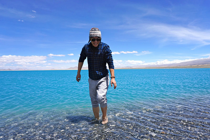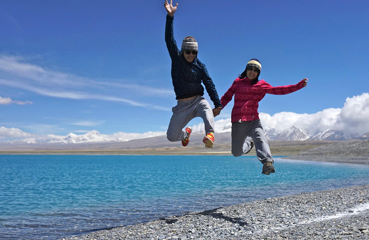 佩枯湖海拔4590米,面积大约300多平方公里。一路上我们遇到的车很少,来到湖边更是空无一人,我们两台车4个人可是在湖边玩嗨了! 佩枯湖有两个地方可以下到湖边,第一个地方就是我们在湖边摆开桌椅喝咖啡的地方,背后是希夏邦马峰,车子可以开到湖边,但是靠岸近的湖水有点黑,河岸也不 是很漂亮。再往吉隆镇的方向开一小段路,有一个岔路可以下去,有一座桥,但是往前就没有路了,也不能开车子下去湖边,要走一小段石子路。但是这里景色特别 的美!湖水清澈的不得了!说实话,佩枯湖是我在西藏见过的最漂亮的湖,比三大圣湖的景色都要迷人,湖水的清澈、温柔、深远,让人的心不由得柔软起来、开阔 起来……