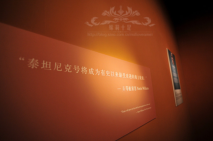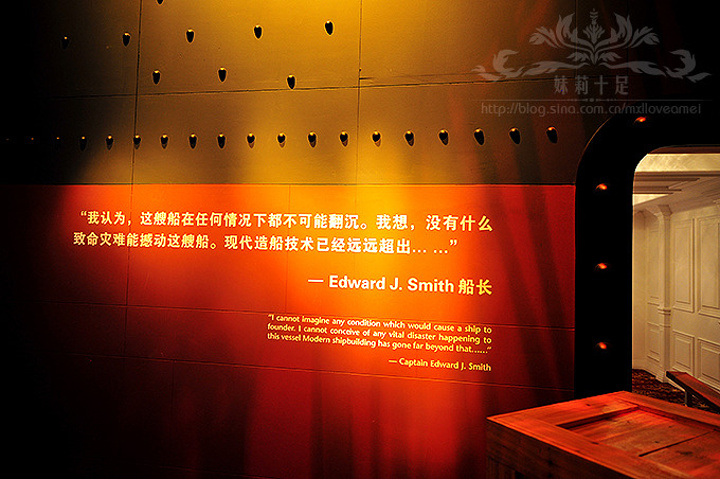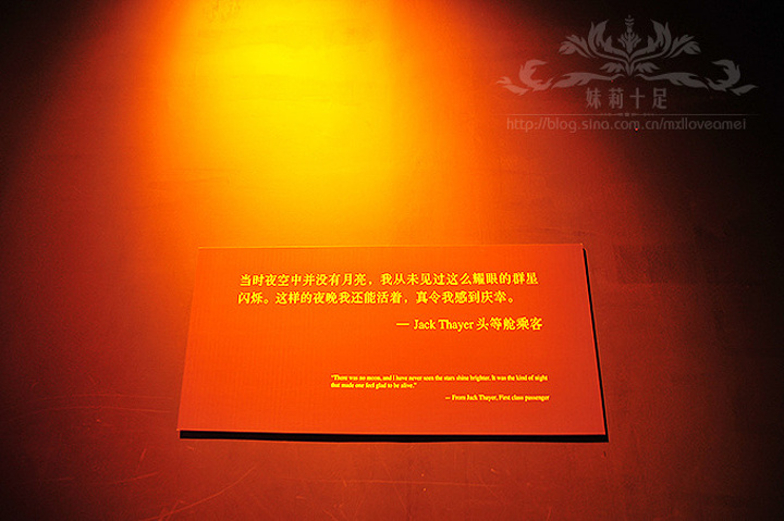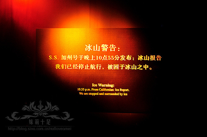从这个门走进去,就是展览的正式开端,看到船长的这句话,回想电影里船体断裂的镜头,我不由的浑身发冷,鸡皮疙瘩都起来了。