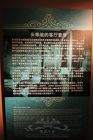 看过电影的人对这道走廊都不会陌生。展览按原比例、原景重现泰坦尼克号客舱、甲板等重要场景。1912年泰坦尼克号首航,这艘“永不沉没号”撞上冰山后沉没,成就了那个壮烈凄美的故事。100年后的今天,这个展览让人们有机会重温当年泰坦尼克号的辉煌。
