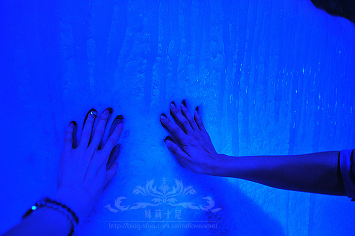 “零度冰山”。冰山上有两个手印模子专门供人们触摸,体验温度。