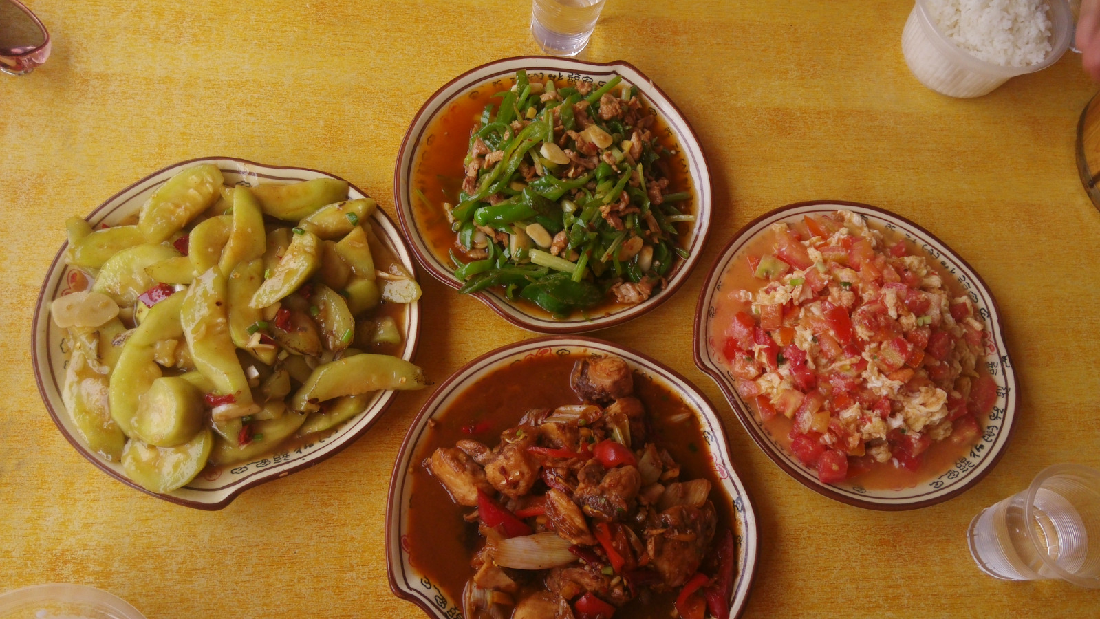 我们四个人点了清炒丝瓜、农家小炒肉、红烧鱼块和西红柿炒鸡蛋,米饭不要钱(米饭蛮好吃的),人均消费17元,在景点附近这个价算很实惠的了。