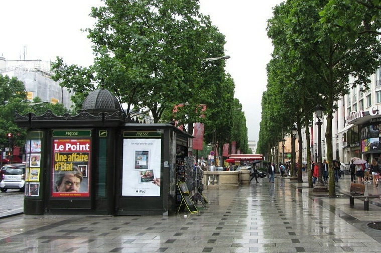 香榭丽舍大道在法国来说是一条非常有名的街道,就好比上海的南京路一样。但是法国人却很少到这来买东西,据我同行的朋友说法国人比较喜欢小店铺。NO1、交通。香榭丽舍大道是凯旋门放射道的其中一条。走到头就是凯旋门。公交车:22、30、73、92路能到。NO2、香榭丽舍大道景观。放眼过去就是巴黎的浪漫情调,并不是非常现代化,楼层也不算高,但是都非常具有特色,附近有小型的公园,发现一个特点就是种树的地方没有水泥路,可能是为了保护树根能吸收到更多的水分吧,路边还有集聚在一堆的植物鲜花。NO2、商品。香榭丽舍大道确实是有非常多的大牌。LV的店面特别吸引人,虽然没用过过多的奢侈品牌,但是很多感觉还是比国内的好看些。还有很多不知名的很多意大利品牌的衣服。有钱的小主可以在这任性一把。NO3、饮食。这里有一家非常有名的咖啡店,名字我叫不出来,但是装修什么的非常吸引人,很容易找到,门口有摆出来的座位,有打伞护着。它有名是因为,这里曾经来过很多大牌明星,据说你只要时间来的对,终会看见几个明星在这家店铺穿梭的。,ps:咖啡的价格一般都在7欧元左右。NO4、晚上的香榭丽舍大道。晚上的香榭丽舍大道你绝对不能错过的,完全的土豪金,清一色的灯光颜色,完全繁华到底,所有的大牌logo,在灯光的映射下,更加好找。放眼过去非常现代化,觉得自己的小金库都快留不住了。