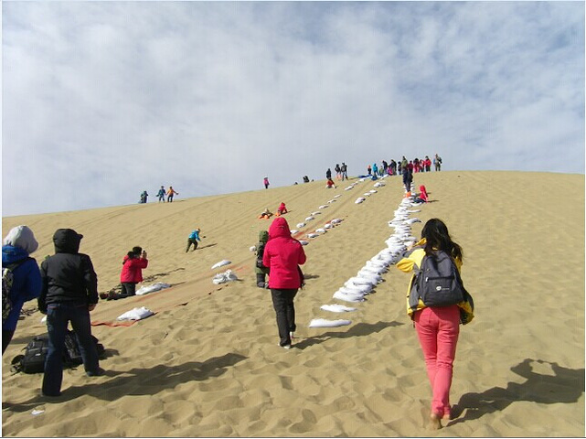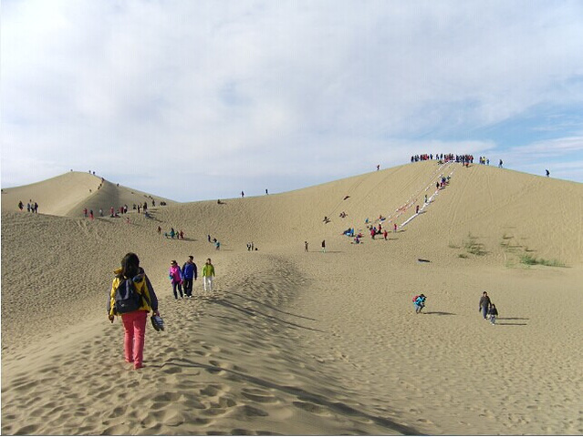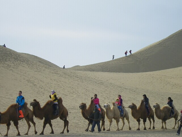我们选择了首先坐车到最远的八道桥往回游, 八道桥是巴丹吉林沙漠, 和其他的几道桥截然不同的景色,这里可以骑骆驼, 坐沙地吉普车和滑沙, 没有到过沙漠的我们玩得挺嗨!