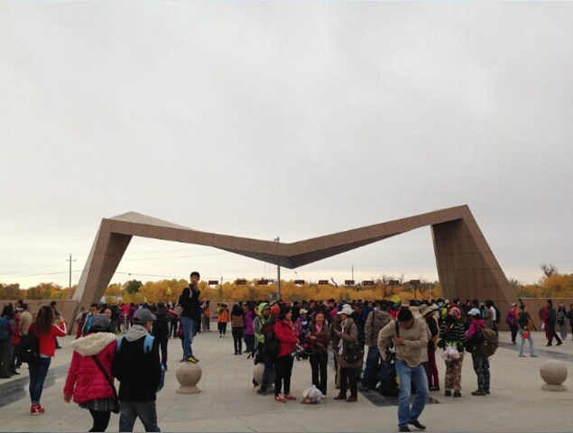 早上6点多起床, 天还黑的, 胡杨林方向远处却红霞一片, 由于天太黑没敢出门, 到7点多天蒙蒙亮出发, 果然如店主所说, 从酒店走过去半小时就到。 门票真心贵240一张, 是我们一路过来最贵的门票, 含景区区间车, 景区蛮大, 从一道桥到八道桥必须坐车,需要起码大半天的时间。