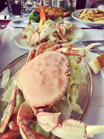 我曾网问,渔人码头吃饭哪家强? 有人推荐BOUDIN,不过BOUDIN要等位,最后我们选了GROTTO,最边上那家。大蟹要了两只,一个芝士焗,一只清蒸。口味都很不错,而且蟹肉肥美。推荐!!有个香港老头当服务员,很会来事,还帮我搞了张停车票,当然要小费也要的很理直气壮。。。。