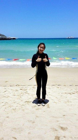 潜水需坐船到另外一处。我会告诉你我竟然晕船吐了么... 海底算不上特别清澈,鱼的种类也不算很多。但是这也是一种经历,一项新学会的技能。 如果每次旅行都能学会一项新技能,我们的人生该有多丰富呢。 有的游记会说潜水时间不够的问题。这里我要说一下,在潜了十分钟左右的时候,教练就说要上船,我看了一眼表说才潜了十分钟啊,要再潜一下,教练也没有说什么。但是我的教练不看我的手势,有几次耳朵已经快要受不了了,一直往上指。。。他也看不见。。。但是我爸的教练就很好,会看他的手势,时间和下潜深度也很好。