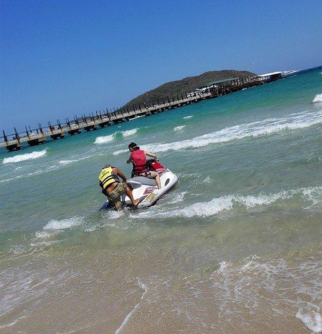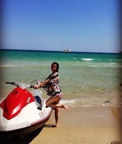 这次摩托艇之后,我发现我爱上了这项运动。 教练帮着从海边开到海里,之后是自己在开。 我加足了马力,一直在海上飞驰。因为有波浪的关系,摩托艇会飞离海面,脱离地心引力的感觉总是奇妙的。 海水扑面而来,好像眼前能看到海豚在跳跃一般。教练在欢呼,他也在享受每一次的出海吧。