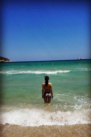最美好的事就是和你遇见--亚龙湾 一早起来还是照例跑到阳台上看海。吃过早饭,一家人就赶往亚龙湾。 到了潜水接待的地方,教练带着我们穿过酒店里的树丛、泳池,见到亚龙湾的那一刻,满心都是欢喜。人不算多,但是所有人的眼中都是笑容。 海浪一层一层的翻滚着,海水碧蓝清澈,好像一眼就能看到海底一样。在这里你可以躺在沙滩椅上看着远处的父母或爱人或孩子天真的玩耍,没有负担。