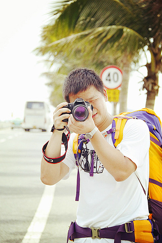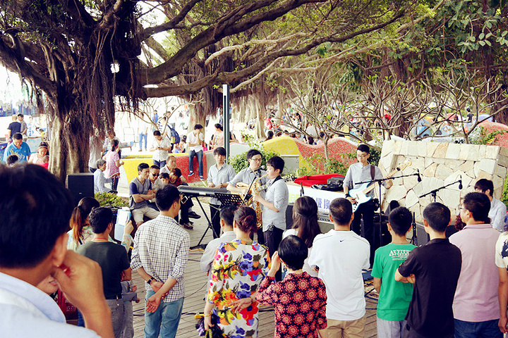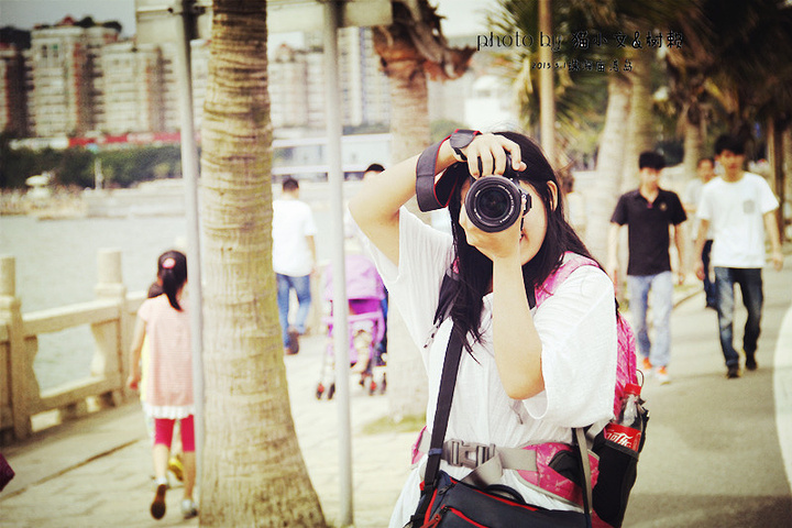 后面小小的珠海渔女! 后头的people mountain people sea! 看完珠海渔女,树赖先生非常喜欢这条沿海长廊,建议我们走去九州港码头。一路开启了各种拍照模式。