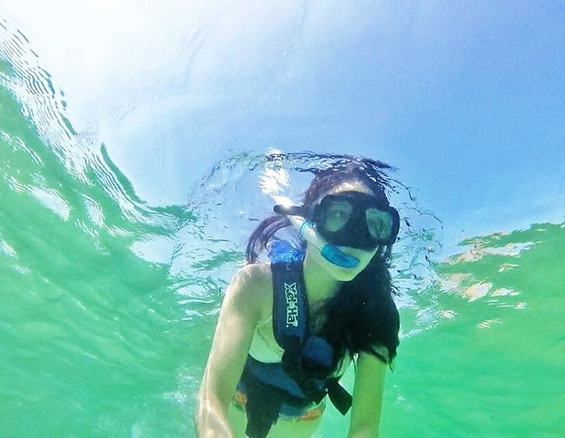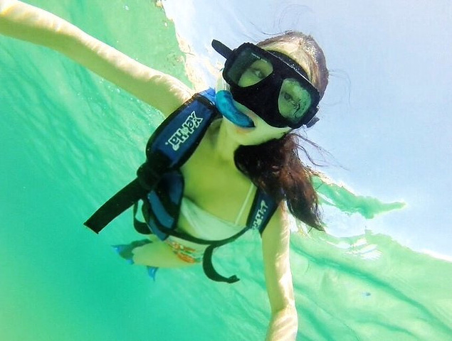 在前些天深潜之后再看Xel-Ha的水下景色,就有一种大巫见小巫的感觉。水下的景色没有深潜时看到的美,不过浮潜安全系数高,可以随心所欲,不用担心呛水。花了一个多小时,游遍了整块浮潜区域,把大部分的鱼种看了个遍。