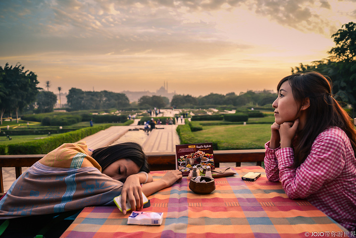 放好了行李,我们赶到艾资哈尔公园,这是开罗的白领人士休息、发呆、欢笑、闲言碎语、谈论信仰与国家,忘记个人孤独的地方。山顶有一家在当地很有名气的餐厅,有着非常美味的埃及料理,虽然我的舌头还是分辨不出任何味道,来这样的高消费场所完全是白瞎,但现在能多看两眼妹纸也觉得是幸福的啊。