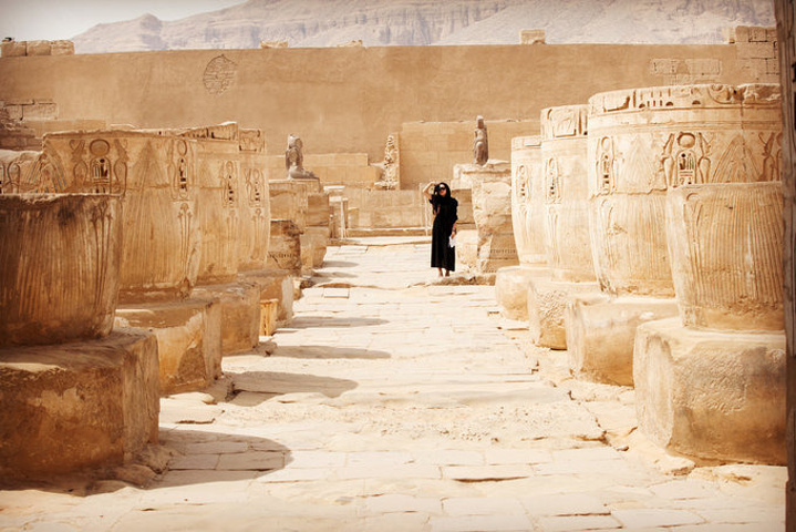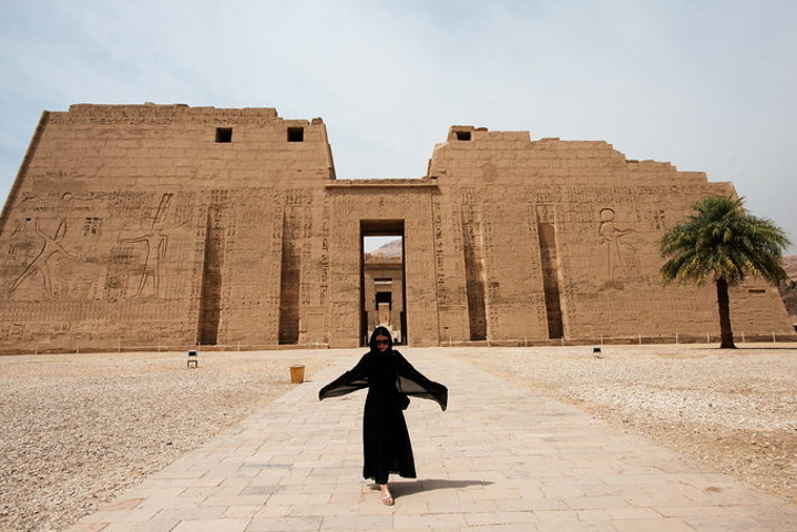 哈布神庙门口的一个埃及妇女帮我包了个正中的阿拉伯头型。原来是这样包的啊。。。从来就没包对过。虽然显脸大 但这样才是正确的好嘛。。