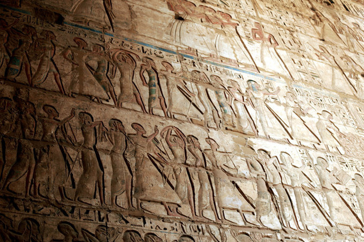 这是哈布神庙里最著名的一幅浮雕。征服者拉美西斯.我们至今依旧可以清晰的看到其战车下面的千军万马.千载以下,风采依旧!