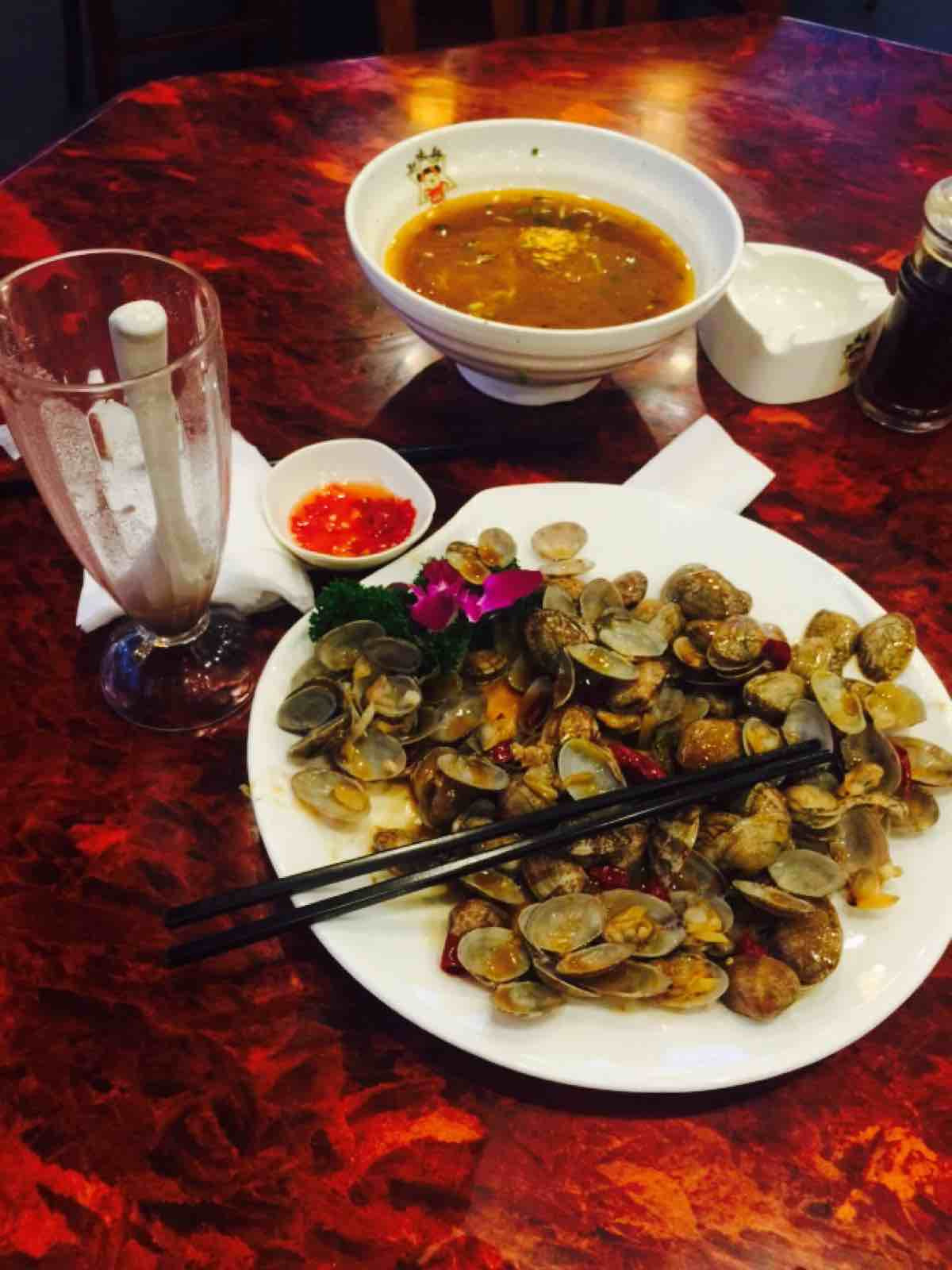 知味轩马鞍山有好几家店,第一次是在健康路清华园对面的知味轩吃的,感觉还不错。知味轩给人的总体感觉像是快餐店,面条、炒饭、盖浇饭等,各种吃完了抹嘴就走人的食物,经营范围早、中、晚三餐都有,这家也是,不同的是它的面积比较大,装修也比较古朴,而且菜品很多,傍晚七点了还这么多人吃饭,说明生意比较火爆。他要了一碗面,我本来说要杯酒酿就行,其他的不吃了,减肥,可是看到花蛤卖相诱人,我就馋了,事实证明,味道确实可以,香辣味,值得拥有,价格也比较便宜22元一大盘,服务员端上来时,盘子里还放了装饰品花,瞬间心情大好,生活就是这样,吃的就是心情。总结:味道不错(看我们吃完后的杯盘狼藉样)、价格实惠,人均17元(见知味轩的结账单)。ps:1.它们家小菜免费,够重口味;2强烈推荐喝他家的酒酿,味道真好,我喝完了还打包带走了一杯,嘿嘿!(不是因为我是吃货,而是真的值得推荐)
