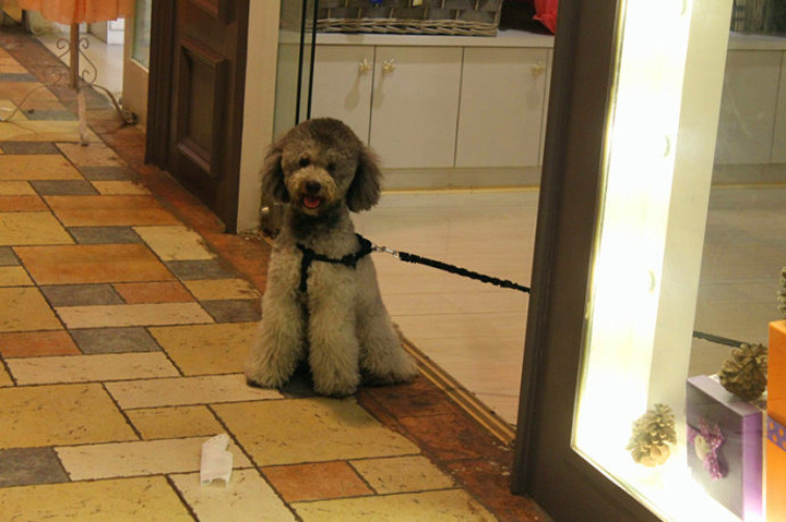店铺像车子一样的装横,我还是头一回看到。好可爱的小狗啊,看到我用相机拍它还特意扮pose让我拍照