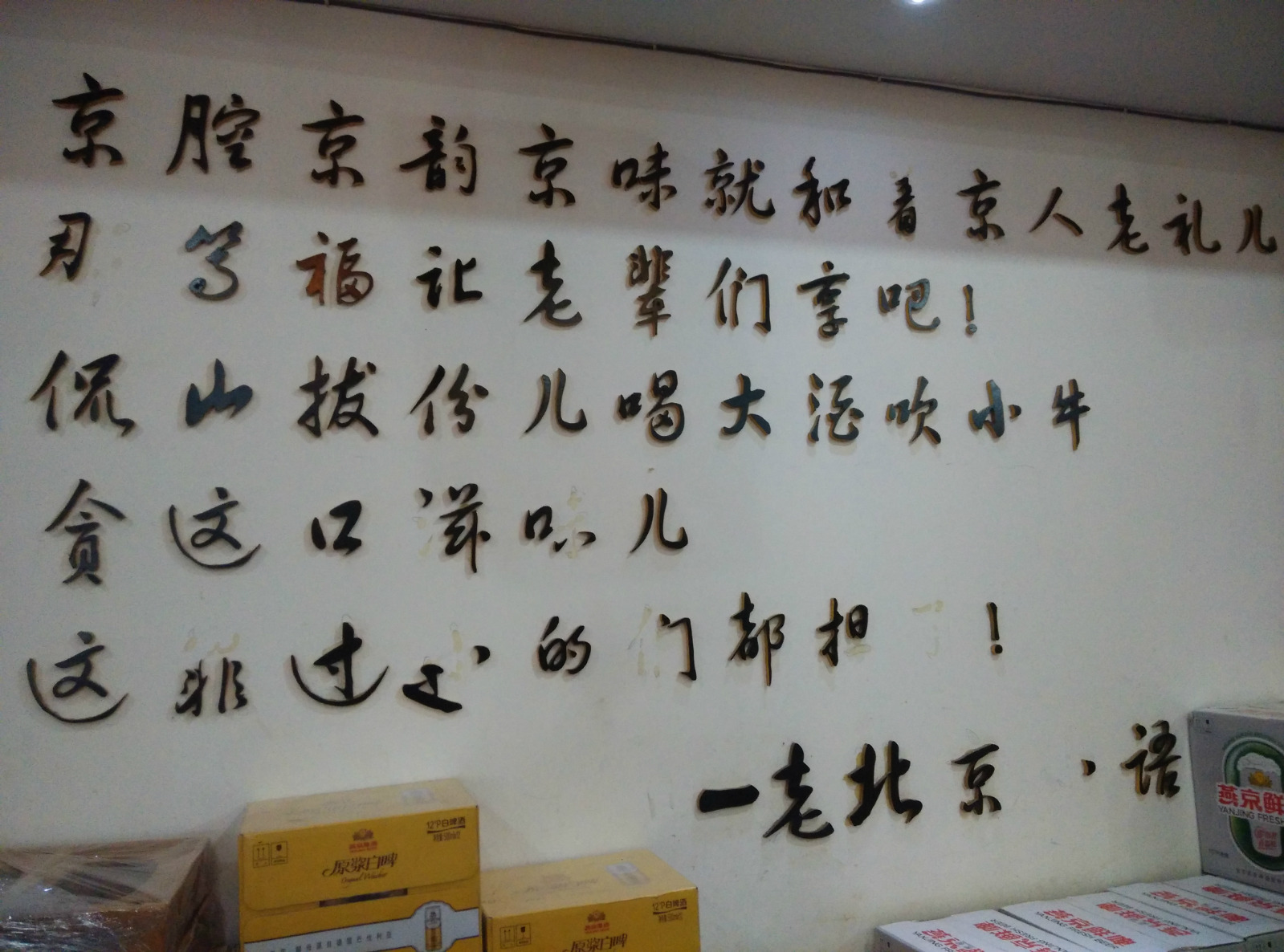 【推荐菜品】炸灌肠、烤鸭。【装修风格】大体上中规中矩的中餐馆,室内装饰物上有老北京特色