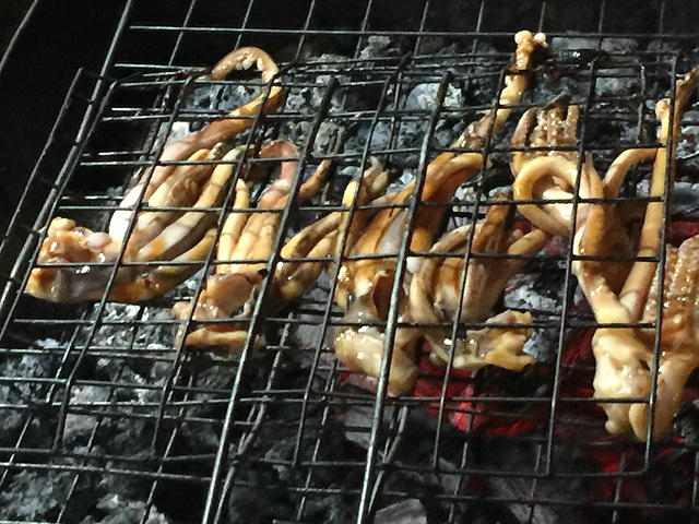 鱿鱼也烧烤,蘸酱。但是口感还是喜欢观音桥那个石板鱿鱼。巴适!