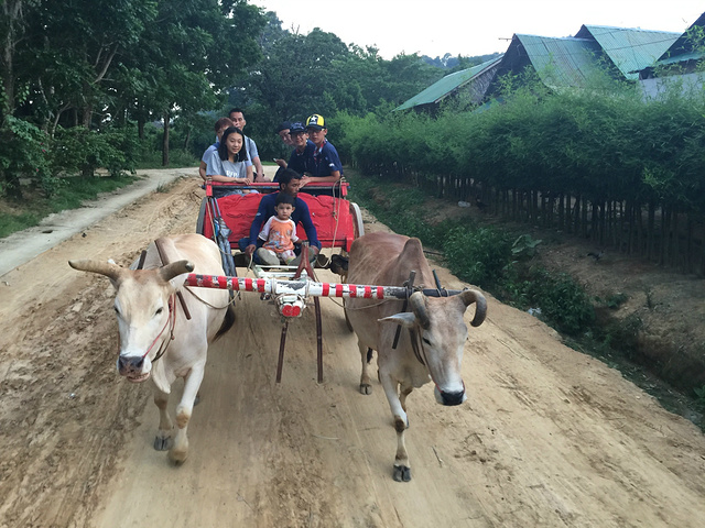 骑大象还不够,还有坐牛车~~哈哈,车夫就一直喊“水晶晶” 走的时候还很热情,nice to meet u····不停的反复~~~哈哈·