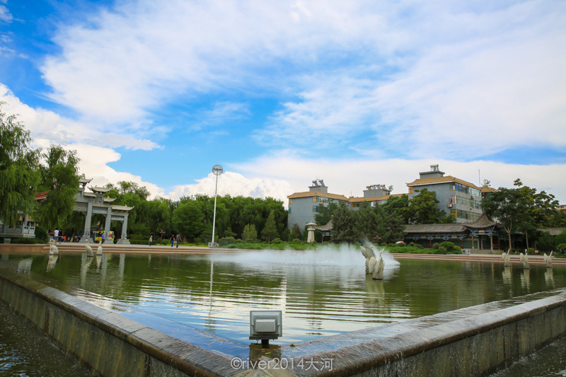 大佛寺前是一座广场,有一个很大的水池,夏天会喷出水雾,许多当地小孩在这里玩耍。大佛寺面积不小,第一座大殿就是大佛殿,供奉着一座卧佛,长约35米,不过殿内不能开灯,光线昏暗看不太清楚,也不让拍照。四周还有许多坐佛和精美的壁画,不过大都被破坏了。后边的殿里有明代手抄的经书,特别珍贵,是镇寺之宝,喜欢佛教历史的游客在这里可以收获很多。一座土塔位于寺庙最后,张掖城内原先按照五行建有水木金火土五座塔,现在只剩下木塔和土塔了。