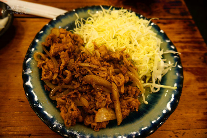 点了一份炒牛肉,想说可以下下饭。不过无甚特色,就是洋葱炒牛肉,然后搭了日式定食里常配的高丽菜丝。