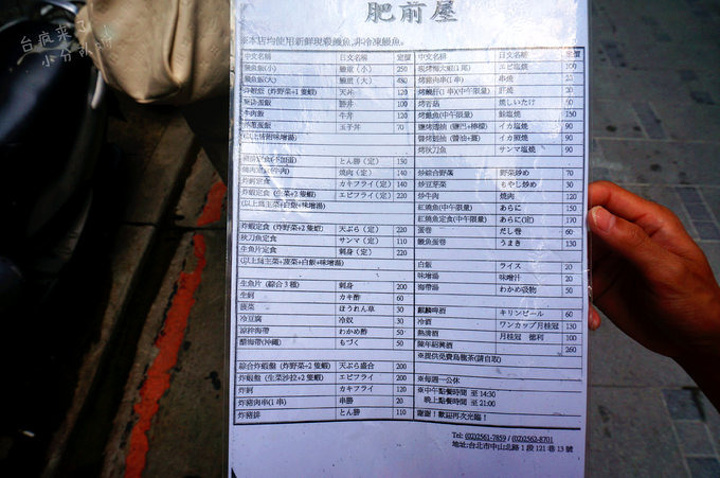 这家平民日料店是台北最著名的日料店之一,被报道了无数次。它所在的林森北路片区在日治时期叫“大正町”,保留着浓浓的日式风情,不少日式居酒屋和料理店都在这片区,和上午和风满满的北投正合拍。排队的时候就可以先看看点什么,先给大家上一份菜单,算平价吧。