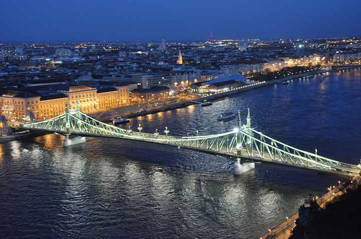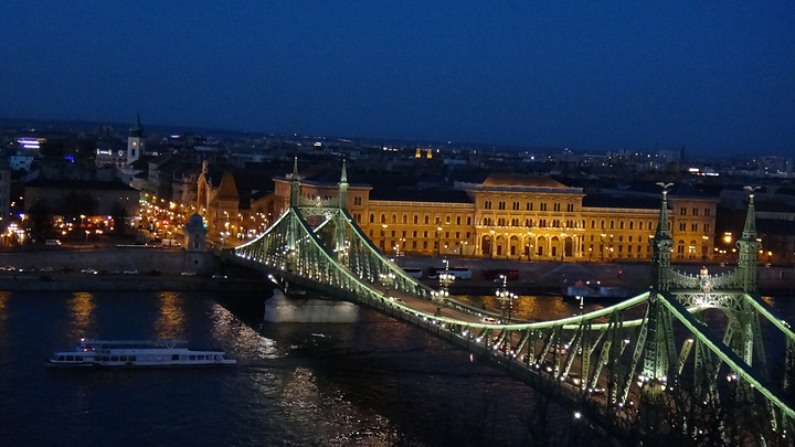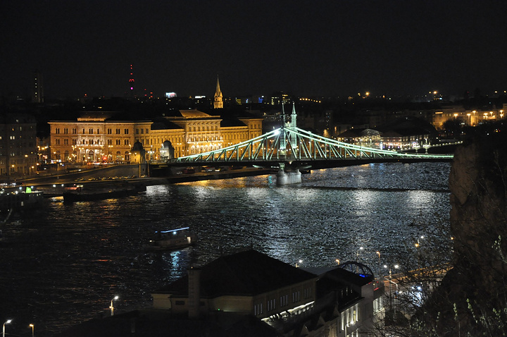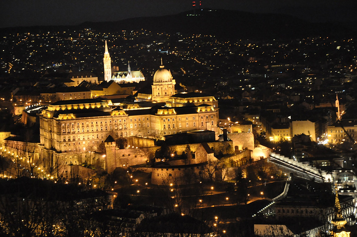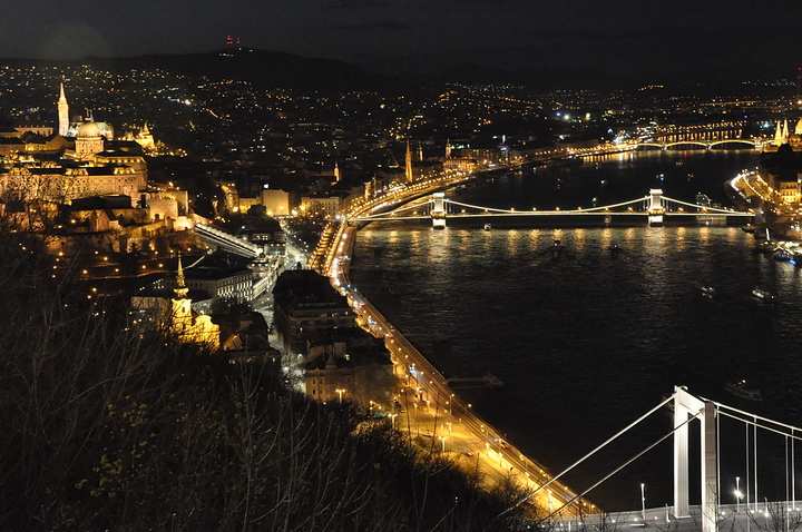 从盖雷尔特山上俯瞰多瑙河和西边佩斯的城市建筑一览无余。夜景的确不错。遗憾没带三脚架,手持相机,虽然尽量保持稳定,总不免会抖动。没办法,凑合吧。
