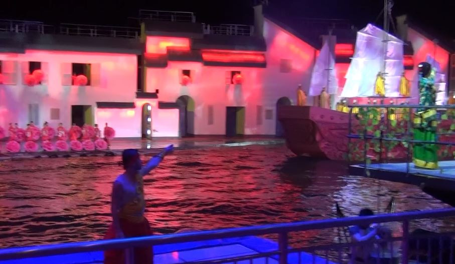 来宏村一般都会去看一场阿菊表演啦,人还挺多的,可能是赶上了旅游季节,几乎是爆满的。我们是导游帮我们买的票,一场下来是1个小时的样子。虽然说赶不上印象丽江这种场景,但也是挺生动的。讲述了一个阿菊的胡娘从嫁人,怀孕,丈夫外出,生子,养育,最后终于丈夫归来,感受古代一个女子的坚强独立。真个表演都是挺高难度的,其中还有杂技团的人来,在水帘中穿梭的场面,我们坐在第一排都被要求船上雨衣,结果还是被溅出来的水弄湿了脸。灯光的效果也很赞,背景是用厚实的墙纸做的,配合灯光虽然谈不上高大上,但表达意境也足够了。我们当时买的是80块钱的票,刚开始是在两边的座位,因为后来中间的位置有人走了,我们就钻过去了,完美的看完哈哈。