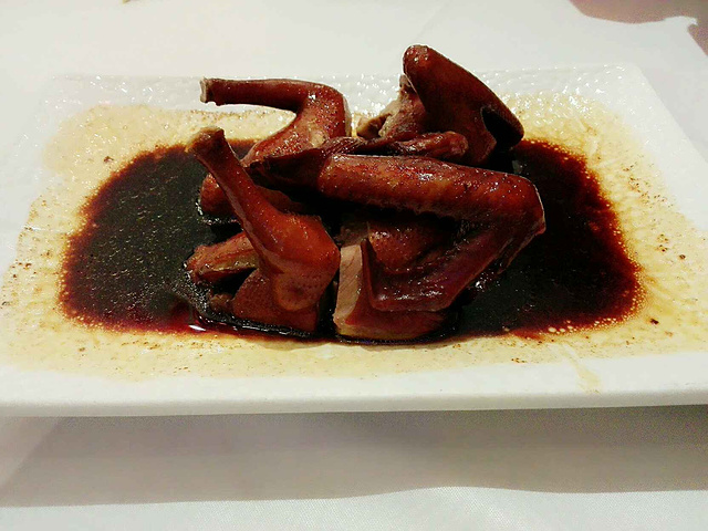 【交通位置】我们是从沙面这儿过去的,跟着地图走了15分钟左右就找到了这家店,他家店隔壁是沙面宾馆; 【人均消费】两人共消费了145元,人均70左右; 【注意事项/优惠信息】他家店在美团和大众上都有团购券,85抵100,而且我们去的时候他家的烤乳鸽是特价优惠哟,原价29元,现价19.8; 【特色推荐】当然是推荐他家的烤乳鸽喽,这是他家的招牌啦,我们点了瑞士汁和普通的,我还是比较喜欢那个普通口味的,瑞士汁的有点太甜了,吃多了会腻; 【环境】他家店店内装修的很有档次,有大厅也有包间,门外还有座椅以方便等位的顾客休息; 【服务】他家服务员很明显是专门培训过得,特有礼貌,给我们这桌服务的小哥儿特可爱,跟他聊天的时候还会害羞,哈哈; 【口味】典型的粤菜口味儿,整体偏淡,像我这种重口味儿的刚开始吃还好,吃多了就有点受不了了。