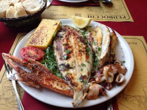 这算是在威尼斯点的比较成功的一餐哈哈,前面都经常点错,自己点的单,含泪也要吃完啊。这次点的真的是赞,而且口味也相当好。除了墨鱼汁意面,感觉一般般,无功无过的样子,除了吃完就变成吸血鬼的嘴巴,并没有给我留下深刻的印象。其他的龙虾意面很棒,感觉是从海里刚刚打捞上来的货物,完全撑住了面的味道了。碳烤海鲜汇也是很好吃,虽然有一点点焦黄,但口感是脆脆的,也没有什么苦味。