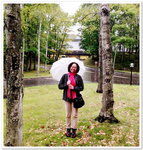 我们打着酒店提供的简易雨伞,在酒店附近的草地上雨中散步非常惬意。一年四季,多种多样的活动精彩纷呈