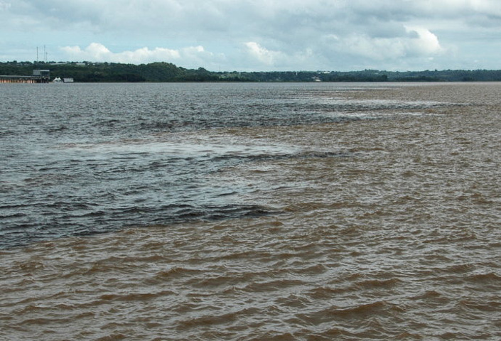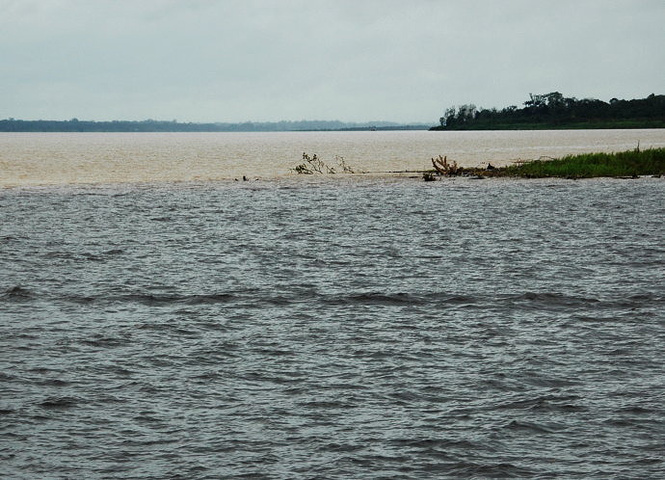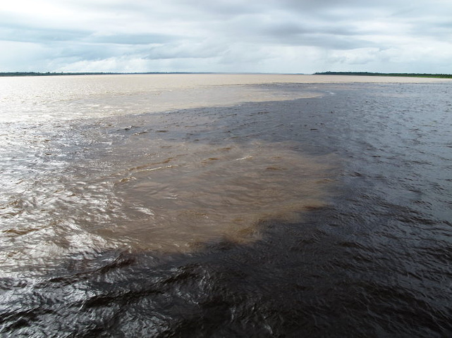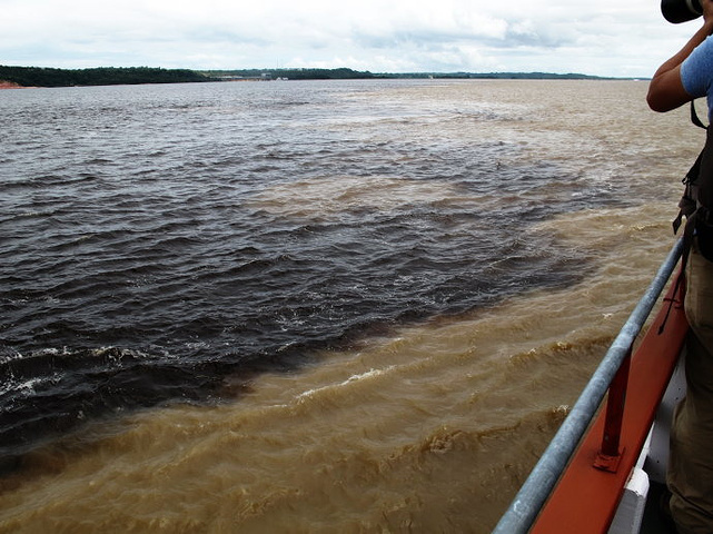 我们的船沿着交界线航行,黑白分明的两种河水分列两边,感觉不是震撼而是难以置信