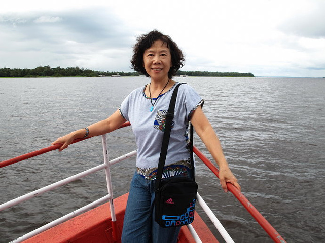 而我们来玛瑙斯的目标之一就是乘船亲临河中间的黑白交界处,亲眼目睹黑白并流这难得一见的奇观。我们的船沿着交界线航行,黑白分明的两种河水分列两边,感觉不是震撼而是难以置信。为了验证视觉的真实性,也是为了证明这不是幻觉,船员从船的两边分别打上来两桶水放到玻璃杯里递给我们。说实话,身处一黑一白两河中间,手上也是一黑一白两种河水,那种感觉真是棒极了。