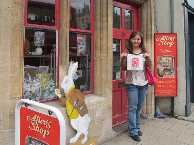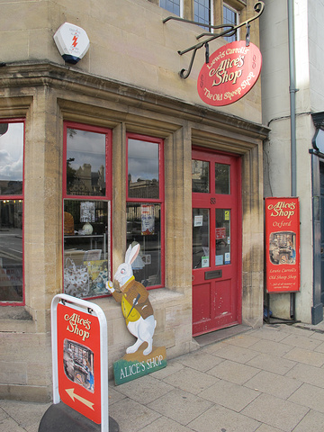 对面不能错过的就是Alice’s Shop,就是当年真实的爱丽丝最喜欢去买糖果的老绵羊商店原址,一样的老房子现在改为了爱丽丝主题商店,有关于爱丽丝的书籍、装饰摆设、各种首饰,印有爱丽丝故事和插画的茶巾、靠垫、明信片、钥匙扣等等各种纪念品,真是爱丽丝读者的wonderland。