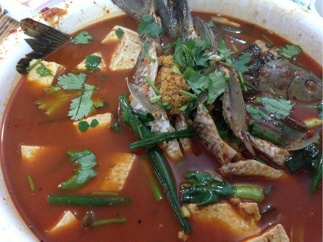 这个酸辣鱼,真的是鲜!到!家!了!和鱼一起熬炖的豆腐微辣微咸,十分入味,现在想想还是口水直流~