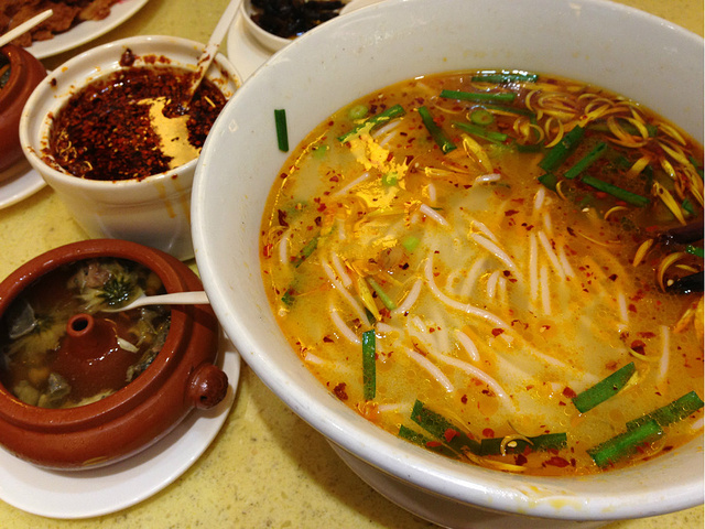 在吃货的眼中,风景美丽固然重要,但最最具吸引力的是云南的一道道美食,舌尖上触及到的滋味,是对一个地方最直观的感受,啥都不说,上美食先 街边小吃店的“辣鸡米线”,廉价但真心好吃,鲜辣咸香,给力~吃了一半才想起来拍照,哈哈