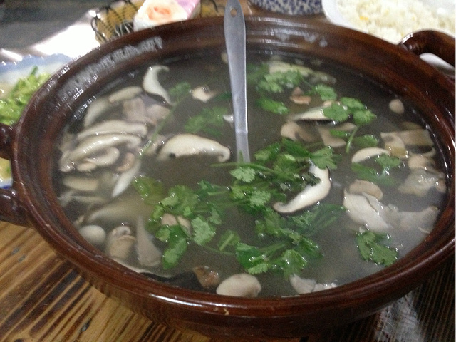 野菌汤,好大一锅,够盛20碗的,做法很简单,但是保留了菌的最原本鲜味,略微加点儿盐、撒点儿香菜,那个汤的滋味啊,继续口水 Ps:美食都是拿手机随手拍的,照的不真切啊