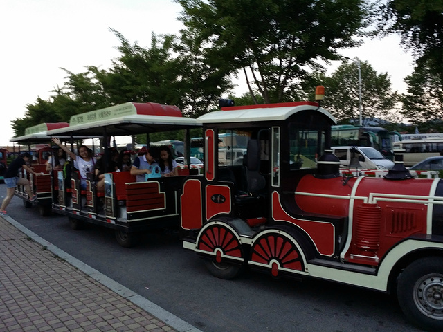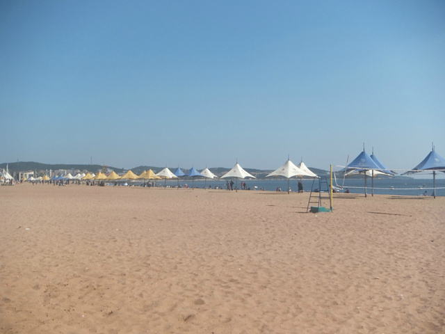 金石滩:黄金海岸--发现王国 黄金海岸 黄金海岸,火车站后轻轨直达金石滩,走一段就到,大连最大最美的海滩,大连石子滩比较多,踩上去比较养生,哈哈。下水玩或者带一个防水垫在沙滩上坐着都很享受,注意做好防晒工作。在这边可以吃吃海鲜什么的。 发现王国 在金石滩玩耍的时间比较充裕的话,也可以腾出时间去发现王国玩一天,和北京欢乐谷差不多,不过在游乐设施上坐到高处就可以看到海。而且从轻轨站到发现王国往返有漂亮的小火车可以坐。 黄金海岸和小火车的景点实拍照片如下所示。