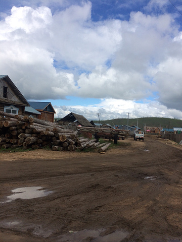 路上都是木房子,到处都是木材。
