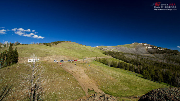 翻越海拔3122米的渥士伯恩山(Mount Washburn),山顶有终年不化的积雪。