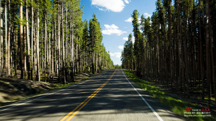 感觉像走进了《2012》的电影中,黄石公园爆发前的那一刻。继续前行,公路都是两旁茂密的森林