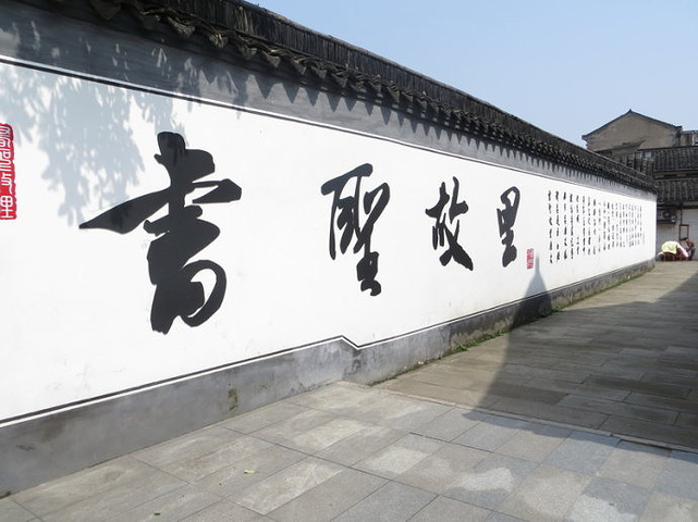 在绍兴,总要追寻古人的遗迹,我们于是去了王羲之故居,现在叫戒珠寺。风和日丽,我们来到蕺山街,这是一条小桥流水人家的历史街区,街口有一个石制牌坊,古风依依,上书“书圣故里”四字,不知何年所建。小巷幽长,踩在被雨淋湿的石板铺的路面上,路面湿湿漉漉,斑斑痕痕的显示着流逝的漫长岁月。绍兴的古朴街区都是分散在城市的各处,他们被高大的楼房,立交桥和四通八达的马路分隔,显得有些可怜,但总算保存了下来了,所以绍兴的古朴的美是要寻找的。不知它们以后的命运如何?慢慢走到一座桥,名曰题扇桥,典故是大书法家王羲之途径此桥,遇一卖扇老妪,悯之,每扇各题五字,老妪之扇遂被众人以高价争购。 再往前走,就是戒珠寺了。晋永嘉元年,王羲之随家族从山东南迁,来到了绍兴。戒珠寺是王羲之旧居,传说一次王羲之失落了一颗自己非常喜爱的明珠,当时怀疑是一位与他过往甚密的老僧所窃。老僧得知自己的友情被怀疑后,也不作任何解释,只是郁闷不乐,最后含愤而死。事后发现,明珠原为王羲之家中的白鹅所误吞。王追悔莫及,舍宅为寺以纪念老僧,并亲题“戒珠讲寺”匾额,表示戒绝玩珠之癖的决心。也有戒律洁白,犹如珠玉之意。