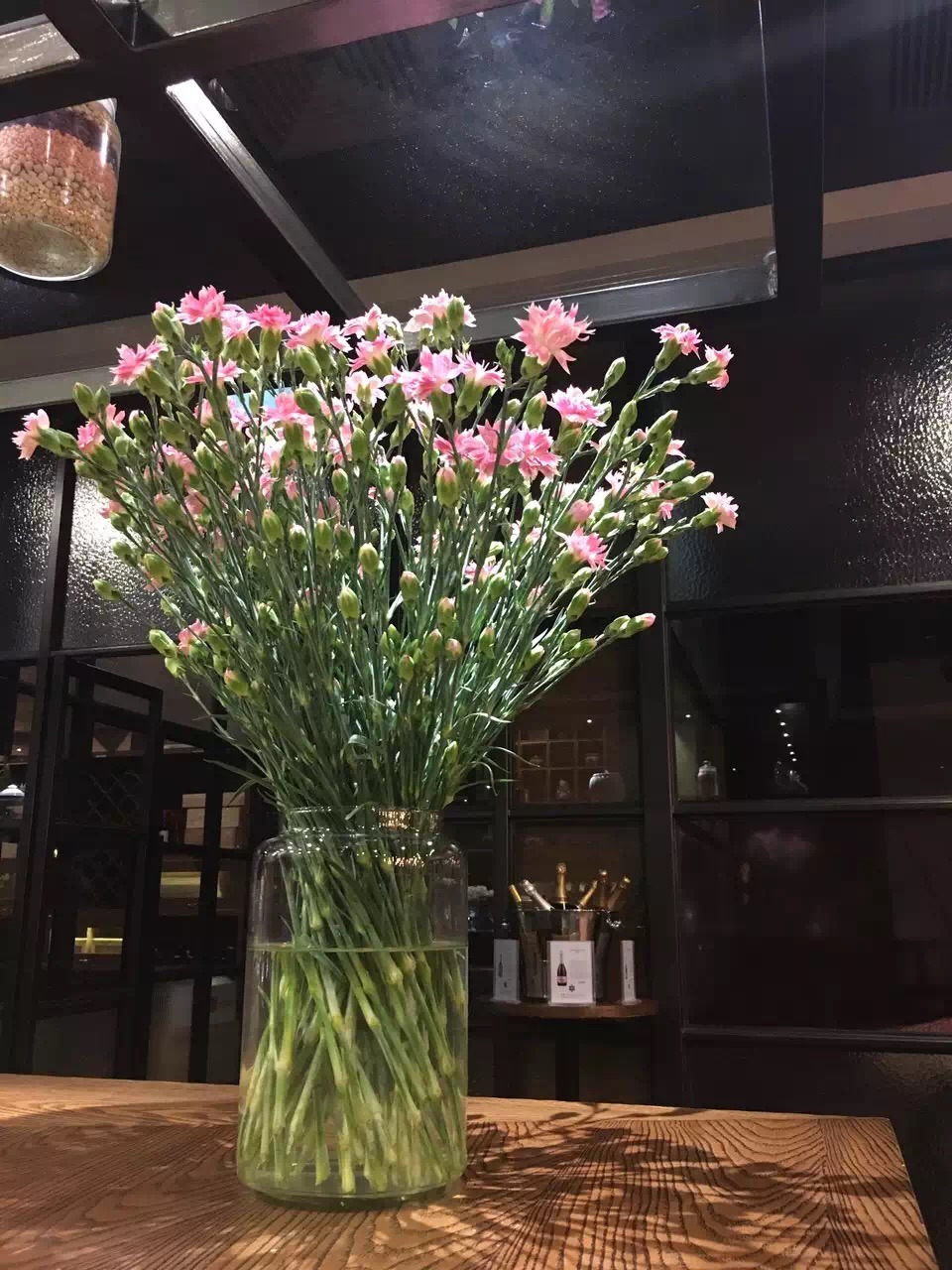 餐厅内还会根据季节的变换而放不同的花束做装饰的。