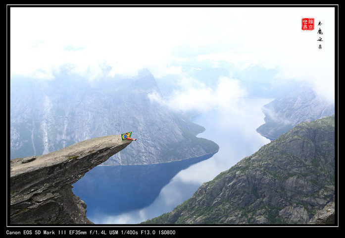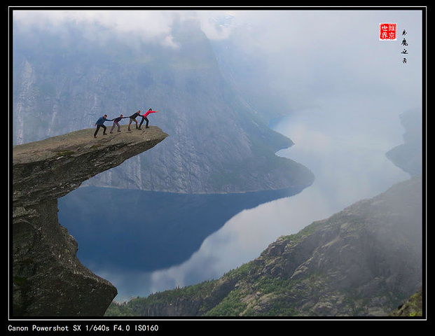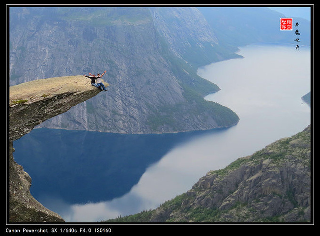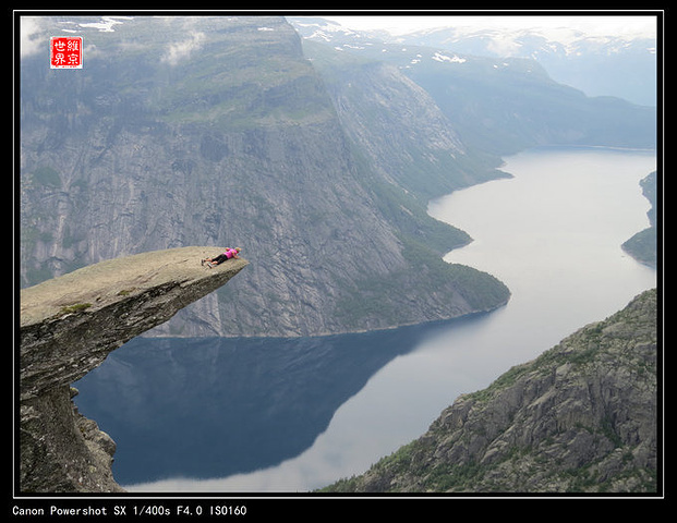 当然最感人当属在这里向自己心爱的人求婚了。 站在高高的山顶巨舌上,俯瞰风景峡湾。伸一伸手,就能拍到万丈深渊,身临其境,才知道“一失足成千古恨”的含义。