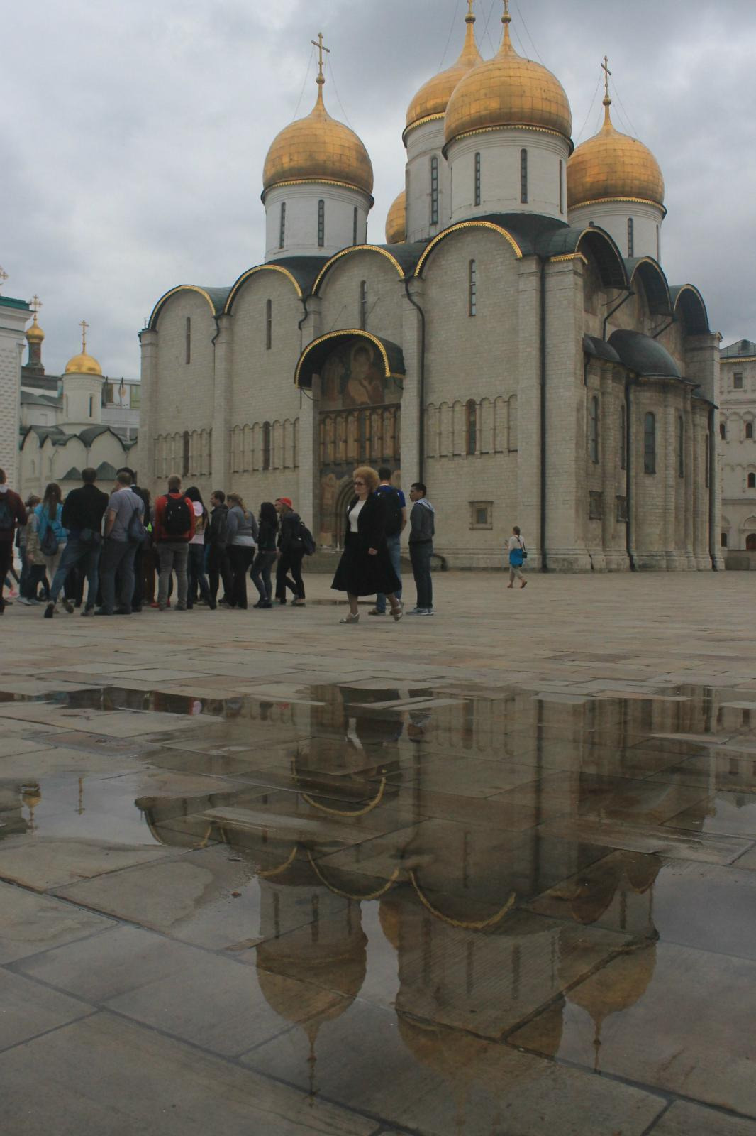 克里姆林宫里的这座圣母升天大教堂在莫斯科教堂中的地位不容小嘘。其建筑风格在俄罗斯也比较罕见,结合了俄罗斯和意大利文艺复兴时期的建筑特点,教堂五个巨大穹顶非常惹人眼球。教堂内部壁画非常精美,《圣母升天》尤为精美,但可惜不允许拍摄。这里也曾经是伊凡大帝举行婚礼的地方。教堂的入口处有9种语言的说明简介,图文并茂,参观游览非常方便。