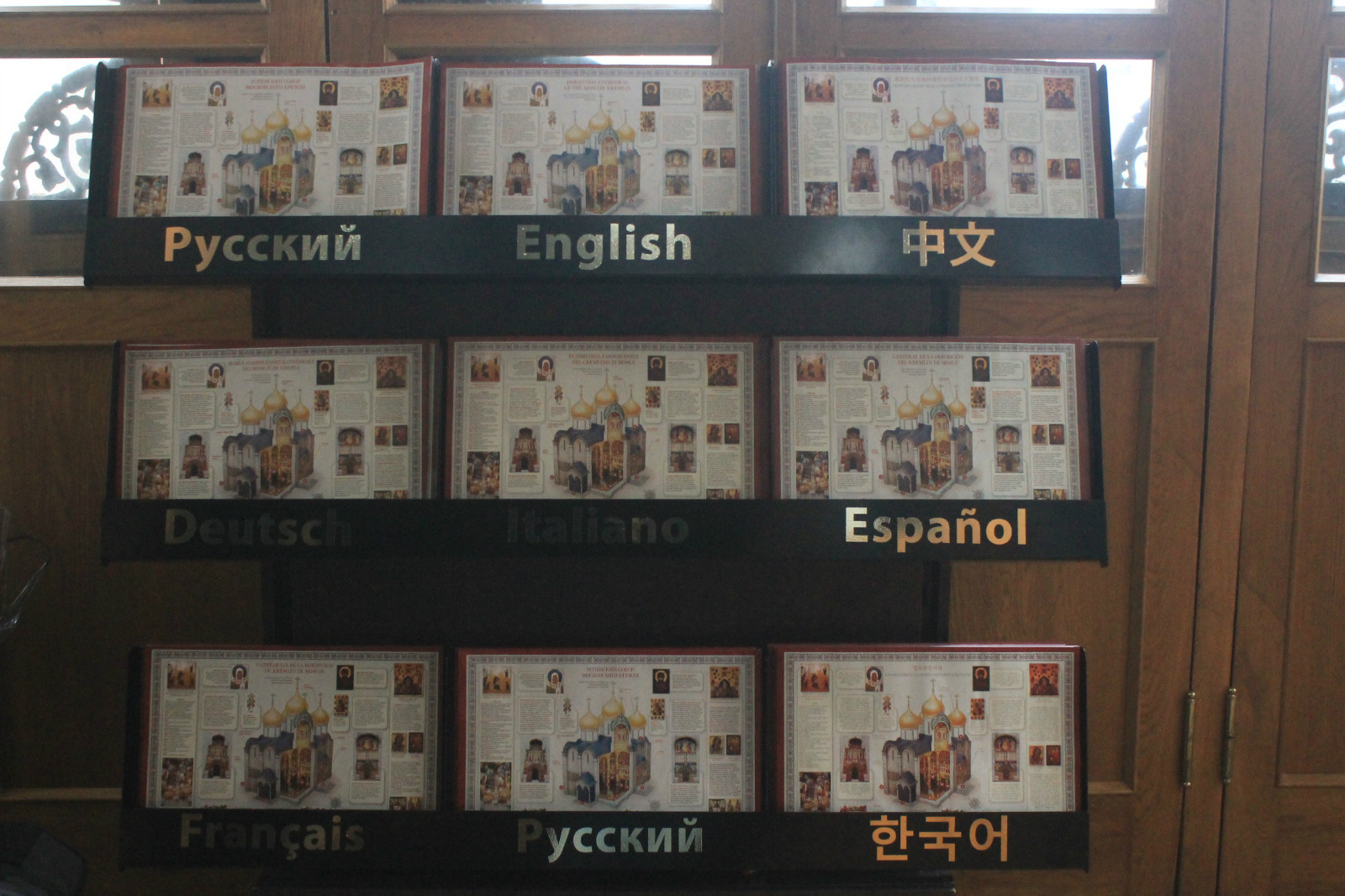 教堂的入口处有9种语言的说明简介,图文并茂,参观游览非常方便。这里也曾经是伊凡大帝举行婚礼的地方