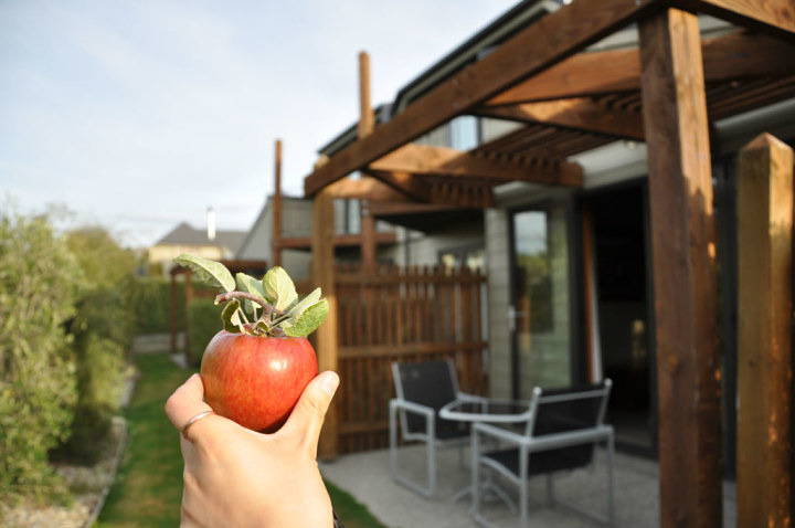 房间后院有很多苹果树,想吃水果的时候直接开门摘一个擦一擦就开吃