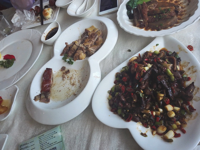 快吃完了才想起来拍张照片,还弄的象是在偷拍,空盘子是卤鹅掌,一人一个吃光了。
